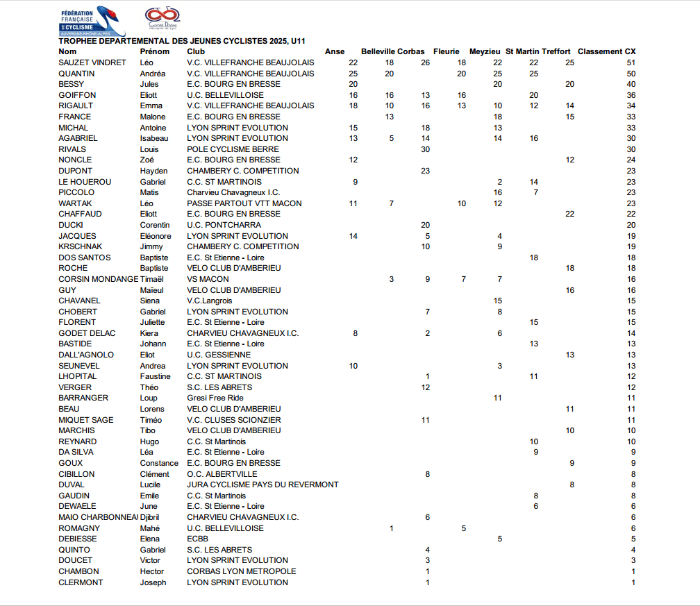 - 06/04/2026 : Grand Prix de Vougy 27 mars 2026